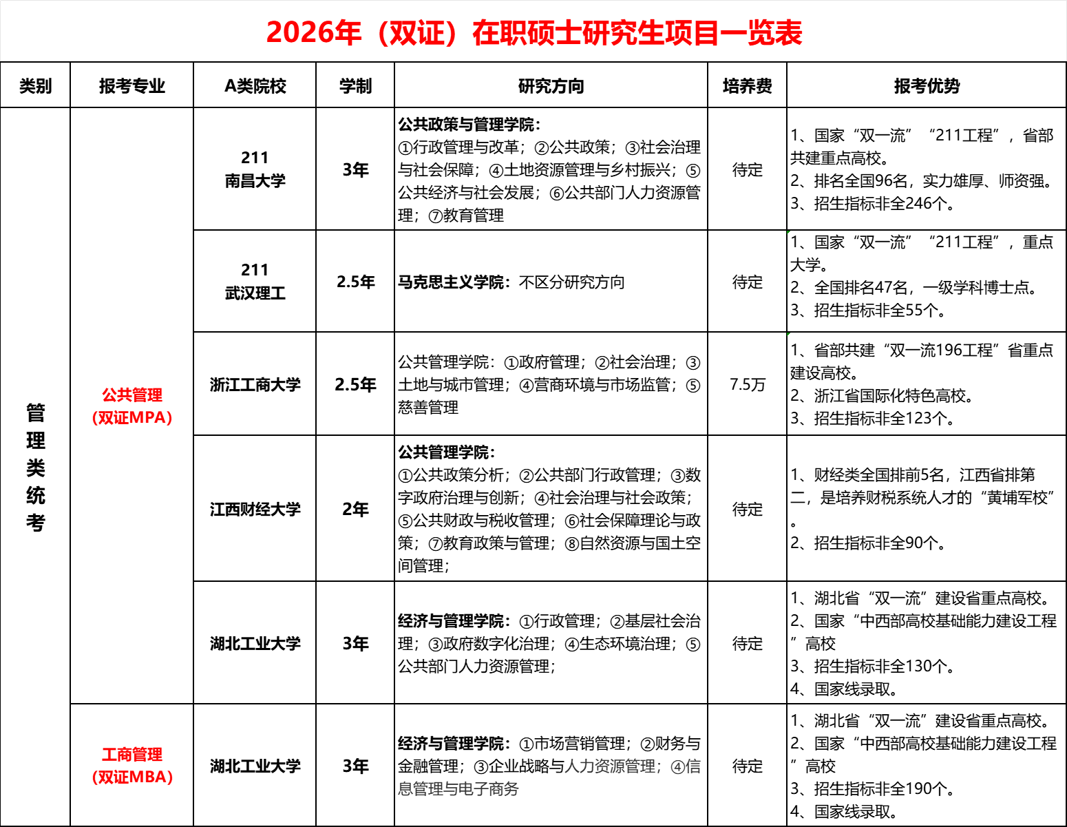 2026年(双证MPA/MBA)在职硕士研究生招生简介