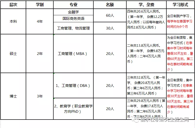 南昌大学联合泰国名牌大学(免试—本/硕/博)招生一览表
